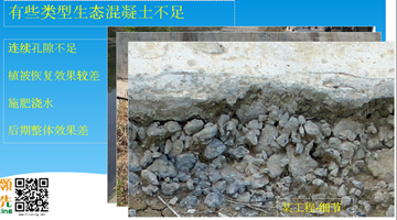 一、傳統(tǒng)混凝土,是指用水泥作膠凝材料,砂、石作骨料,與水按一定比例配合,經(jīng)攪拌而得的水泥混凝土,也稱普通混凝土,它廣泛應(yīng)用于土木工程。但是,普通混凝土材料是一種堿性材料,一般不能生長植物,用于河道護(hù)坡,對(duì)生態(tài)具有較大的破壞作用。